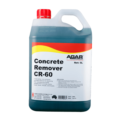 Concrete Remover CR-60 is a fast-acting, non-fuming concrete remover for dissolving lime, concrete and mortar residues from concrete mixers, trucks, trowels used in laying and transporting concrete as well as from surfaces that have been splashed with concrete.