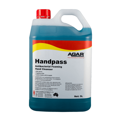 HANDPASS is a non-thickened antibacterial liquid hand soap that provides a rich foam lather. It is designed to be dispensed from special foaming hand soap dispensers that deliver the soap in the form of a foam rather than a liquid or lotion. This is a more economical way to dispense the hand soap.