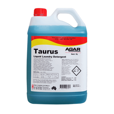 TAURUS is a high-quality environmentally friendly laundry liquid for industrial and domestic clothes-washing. TAURUS is safe for washing all cottons, coloureds, whites, synthetics and blends. It works in both hot and cold water. TAURUS may also be used to wash machine-washable woollen garments.