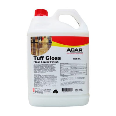 Tuff-Gloss is Agar¡¯s latest sealer that uses advanced polymer technology to create a dual-action sealer-finish that is both ultra-durable and beautifully glossy. With extra-high solids, Tuff-Gloss requires fewer coats and saves time and labour. Tuff-Gloss has high scratch-resistance and responsive buffability which means that it will maintain its shine ad extend the time between strips and seals.