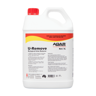 U-REMOVE utilises advanced biologically active ingredients to digest and consume organic soilage and uric acid salts left by urine in fabrics and carpets. U-REMOVE destroys urine odours and helps prevent stains.