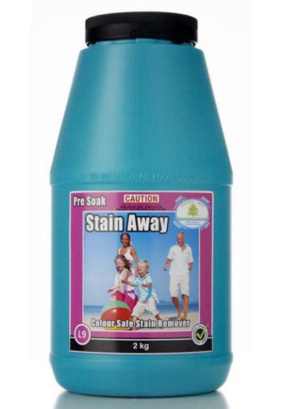 STAIN AWAY – PRE SOAK has been specifically formulated for cleaning and whitening clothes, particularly children’s nappies. STAIN AWAY – PRE SOAK is a an effective bleaching agent and is suitable for use on a wide range of white and coloured fabrics. It is also suitable for use as a crockery destainer